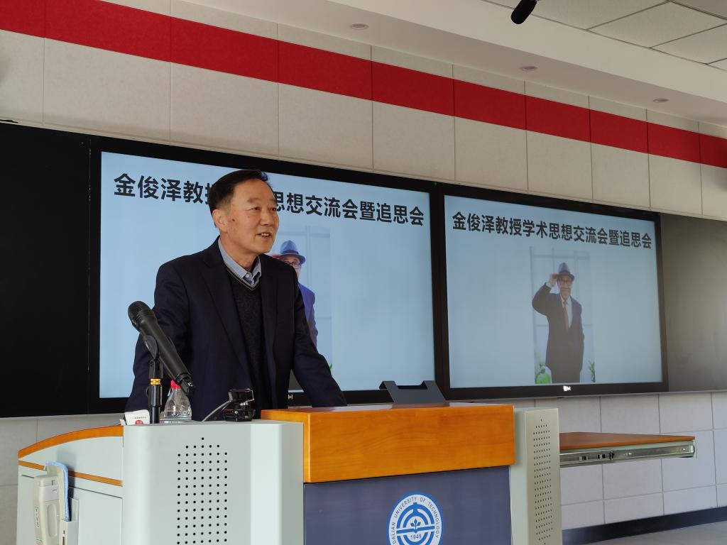 李廷举教授主持了讨论交流环节,多位老师纷纷发言,深情回忆了与金俊泽教授相处学习的情谊。李老师首先表示对金先生最深刻的印象是他终身学习的精神,讲述金先生年岁渐长后仍坚持自学有限元、CAD等知识,也希望大家能保持对知识的探索欲不断学习;姚山教授回忆学生时代组内艰苦奋斗却也温暖轻松的日子,表示将当下的点点滴滴做好一定会对未来有帮助;郝海教授勉励大家学好语言、学好专业、培养爱好,能坚持想法敢于发言;张维平教授回忆了金先生对自身和学生严格要求的治学态度;王同敏教授讲述了金先生严谨治学的工作风格;张兴国教授以缘分一词展开回忆了与金先生日常相处的趣事,风趣幽默的语言中表达了对金先生的怀念;曹志强教授讲述金先生对专业方向创新的看法,鼓励大家要敢于创新、善于创新;房灿峰教授以自身论文答辩经历展开,希望同学们严谨治学。