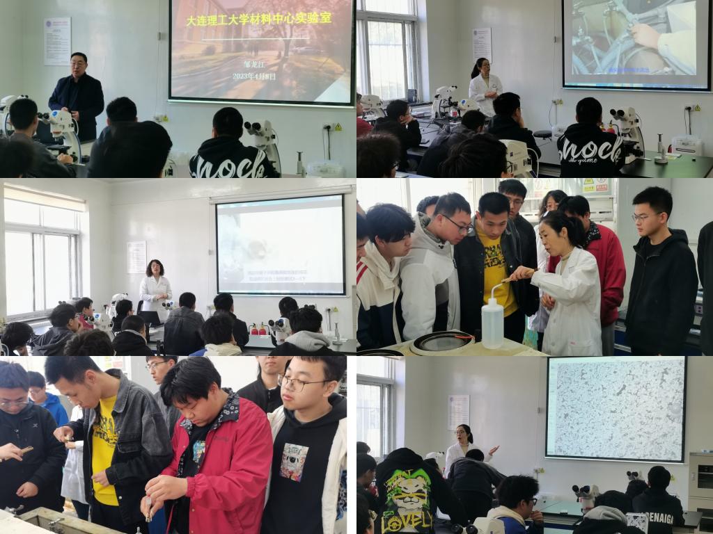 实验室参观环节。首先,实验中心老师带领学生观看金相磨样、抛光、腐蚀视频,现场讲解观察金相的理论知识。理论学习完毕后,由戚琳老师带领学生参观磨样室,现场演示如何磨样、抛光,同学们亲手腐蚀样品,并用金相显微镜观察样品显微组织,亲自体验材料的变化奥秘,深入感受材料魅力。最后由刘晓英老师带队同学们参观大型仪器,了解材料表征相关设备,感受必威深厚的底蕴。