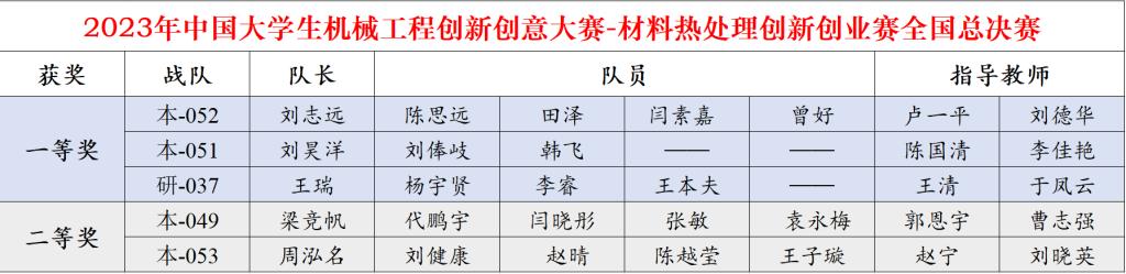 2023年7月15日-16日,中国大学生机械工程创新创意大赛——材料热处理创新创业赛总决赛在江苏科技大学举行。必威5支队伍在副院长陈国清教授和中国机械工程学会热处理分会理事王清教授的带领下,在学院大赛组委会老师的悉心指导下,认真备赛,精诚协作、攻坚克难。最终在与110所高校的225支队伍同台竞技中斩获佳绩。其中3支队伍获全国一等奖,2支队伍获全国二等奖,展现了大工材料学子的风采。