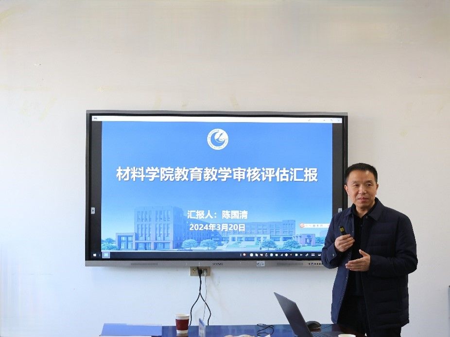陈国清教授详细汇报了学院当前发展情况、审核评估工作进展情况、存在问题及进一步工作计划。