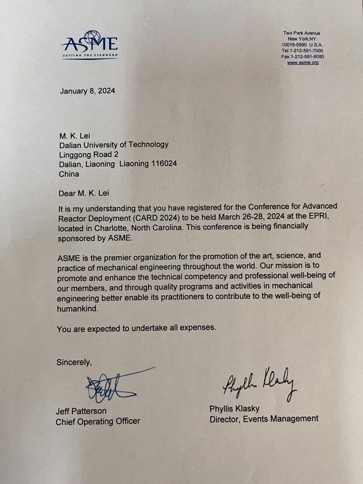 2024-03-28 | 美国 | 北卡罗来纳 夏洛特 | 参加2024届CARD (Conference for Advanced Reactor Deployment) ASME先进反应堆部署会议 |