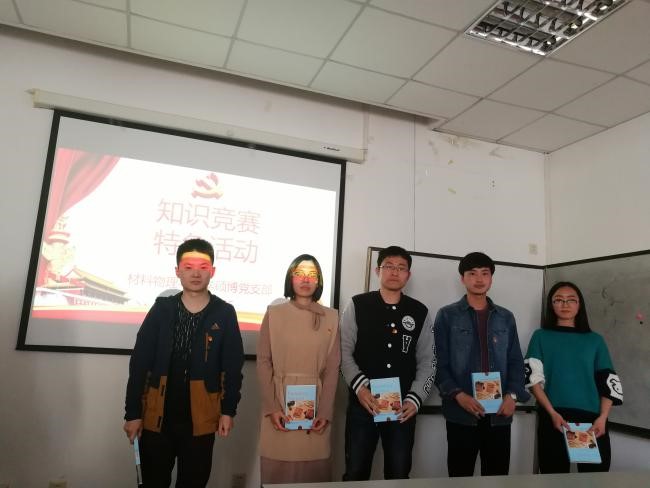 2018年4月25日,必威材料物理与化学硕博党支部在新三束实验楼408开展每月一次的党组织生活会议,并举办了特色知识竞赛活动。全体党员及积极分子踊跃参加,现场气氛活跃。本次活动打破常规的试卷答题,采取PPT答题的方式,有效的调动了大家的积极性。