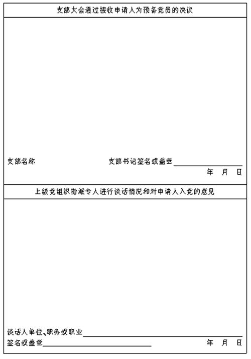 1.《中国共产党入党志愿书》(2004年制)式样;